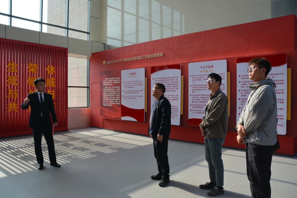 交流会后,在内蒙古财经大学公司党委副书记任海霞及教务科等工作人员陪同下,一行先后参观了内蒙古财经大学铸牢中华民族共同体意识实践教育基地、思政课共享型虚拟现实实践教学基地。